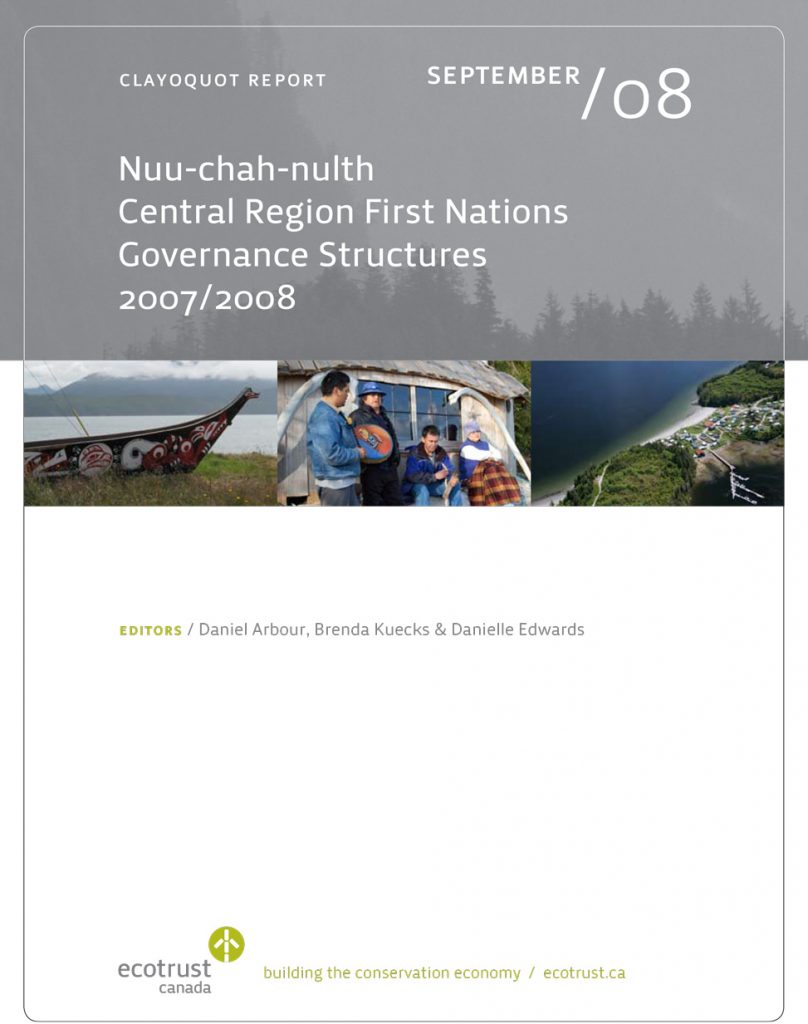 Ecotrust Canada has learned a tremendous amount from the local First Nations researchers who helped to write this report and we are grateful for the lessons learned from our First Nations friends and colleagues. We learned that the governance structures in First Nations are not only alive and vibrant, but also that they have much to teach us.